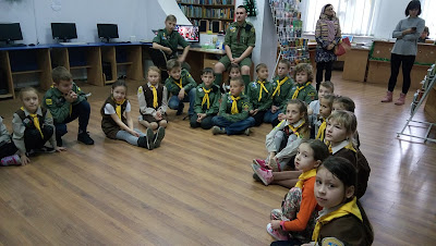 До бібліотеки завітали луцькі пластуни з Молодіжної організації станиця «Луцьк», які провели вишкіл новаків. Як і кожне свято, так і вишкіл, мав чимало весолощів, забав, подарунків, пісень. Але все це відбувалось в традиціях пласту. Звучали молитви за Україну, родину, мир і злагоду. Далі були конкурси, за яким уважно стежило почесне журі. Перший конкурс на найшвидше одягання пластунської форми, яку потрібно не тільки одягнути самому , але й допомогти товаришеві. Наступний конкурс, це були різдвянні пісні у виконанні кожного із загонів. Ще діти грали в гру, яка допомагала їм «найти шлях», довірившись підказкам друзів зі своєї команди. Найвідповідальнішим був кулінарний. Кожна із команд підготувала на вишкіл командні, власноручно виготовленні «пряничкові» будиночки. Необхідно було розповісти членам журі про те, як виготовлявся будиночок, хто яку роботи в цьому процесі виконував. А ще, під час презентаціїї , діти розповіли легенду про те, звідки з’явилася традиція пекти такі солодкі будиночки. За результатами конкурсів кожній із комнад дістались подарунки, з якими вони щедро поділились до спільнго столу. Окрім святкових подарунків. виховники загонів, нагородили учасників вишколу, відзнаками за хорошу поведінку, відмінні знання і виконання правил пластунів. корисну допомогу на благо організаціїї.